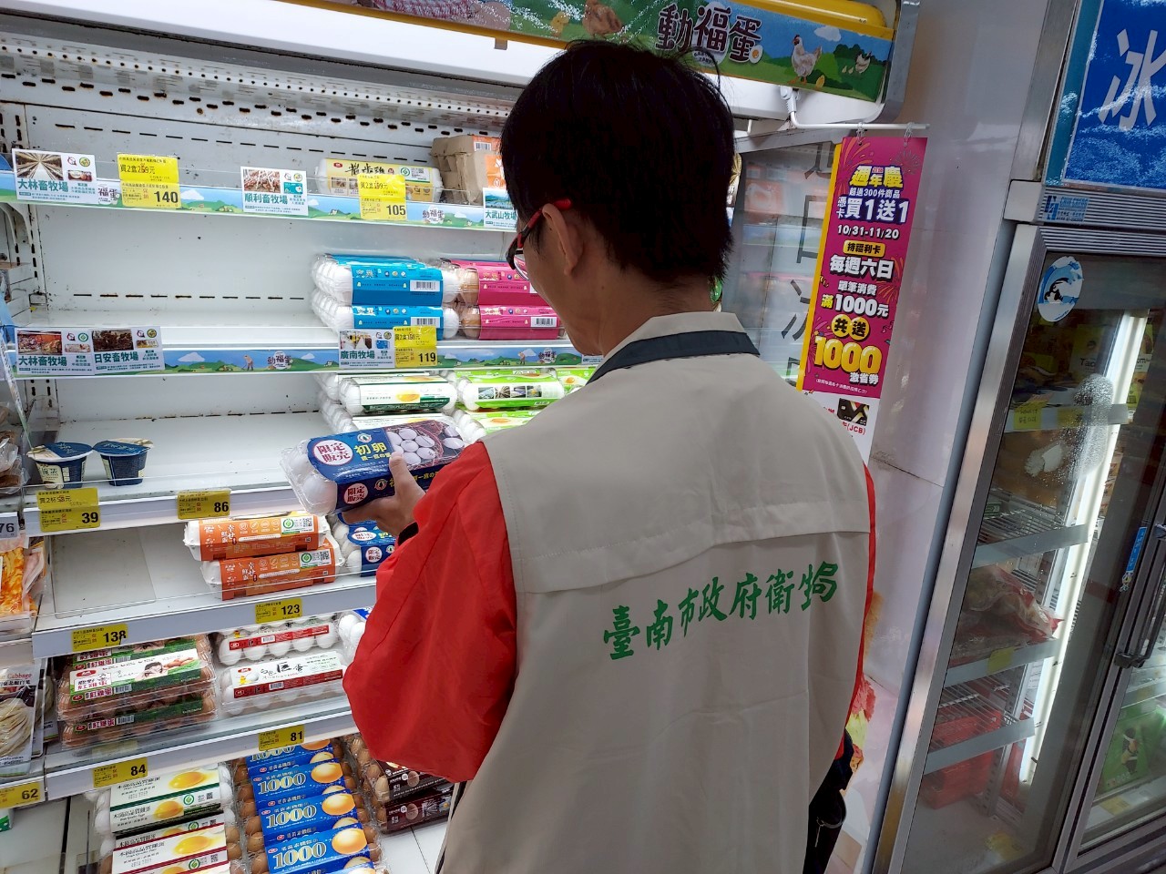 經查臺南店近一個月未再進相關批號產品,另於佳里店有進貨「悠活鮮蛋(有效日期114.11.11)」60盒已售罄、「初卵頭窩(白殼)(有效日期114.11.21)」14盒現場架上剩餘7盒,已請業者下架並現場張貼公告回收品項,目前尚未有民眾進行退貨。
