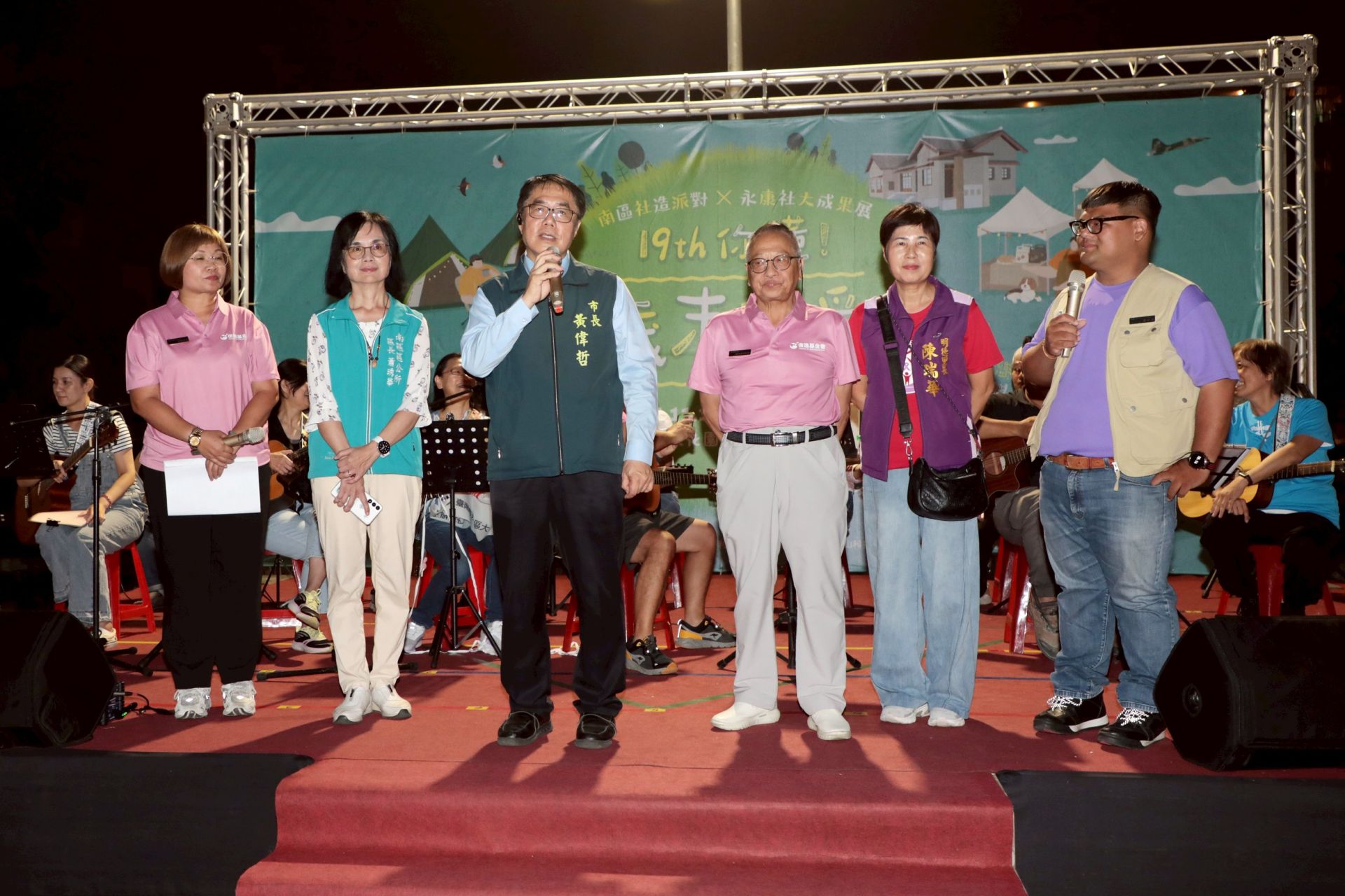黃偉哲市長也走訪旁邊的永康社大成果展,向社區學員與老師們致意。