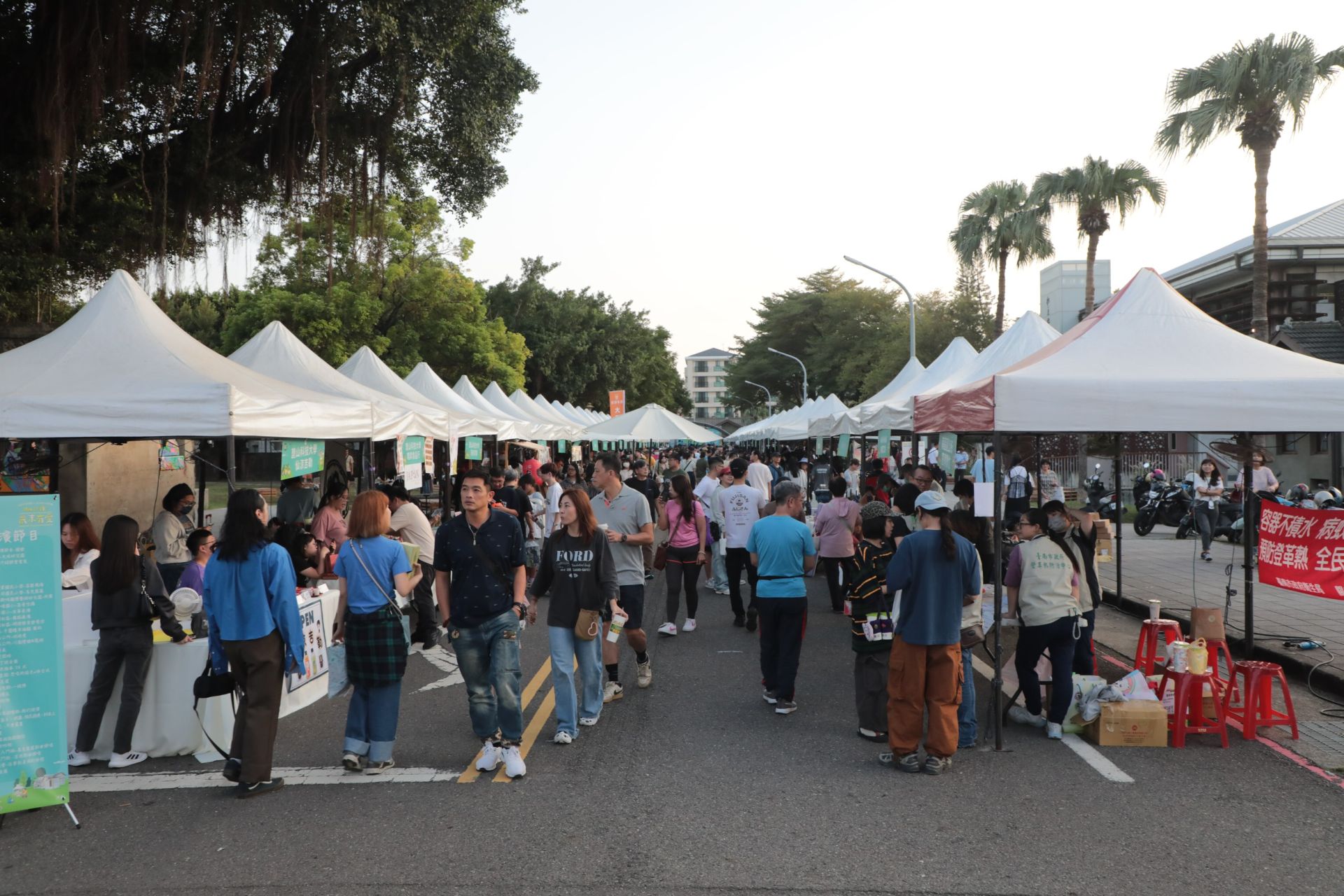 今日台南水交社文化園區周邊人潮滾滾,同時間鄰近的「南區社區派對—永康社大成果展」亦熱鬧登場,現場湧入眾多市民參與,形成雙活動相互帶動的人潮盛況。市長黃偉哲也趁活動間隙走訪旁邊的永康社大成果展,向社區學員與老師們致意,稱讚展出作品展現台南社區蓬勃的創作力與學習能量。他表示,無論是寵物友善活動或社區深耕課程,都是台南宜居城市的重要基礎。
