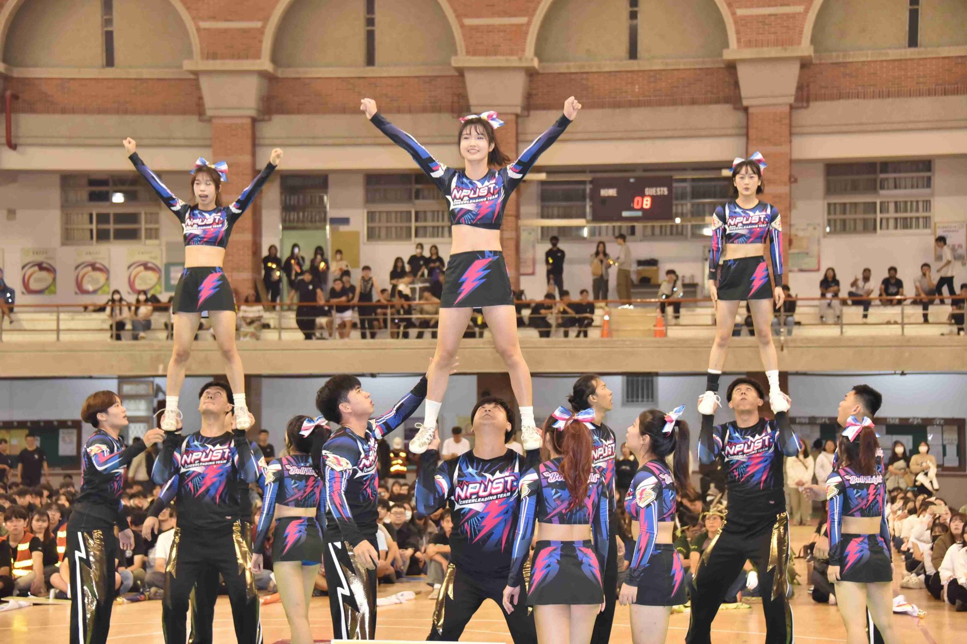 壓軸登場的競技啦啦隊表演是全場焦點,結合體操與舞蹈,讓現場尖叫聲不斷。圖_屏科大提供