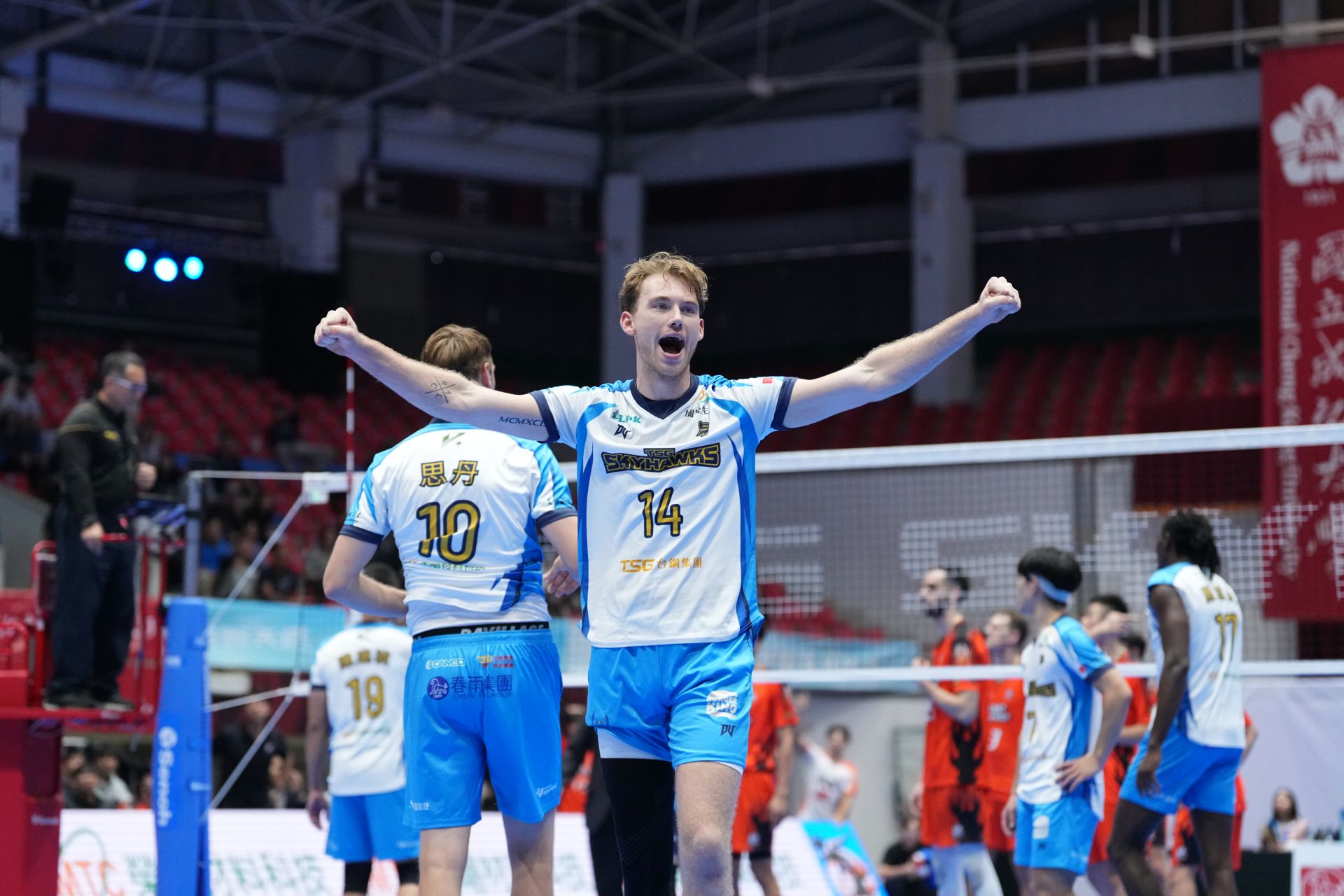 關鍵第四局,雙方持續激烈拉鋸。台鋼天鷹在調整後有效減少失誤,並以堅實的攔網與防守重建場上節奏。局末盧清銓臨危上陣,穩定掌控節奏,並成功與睿克連線於四號位重扣得手,成功捍衛本週主場全勝佳績。