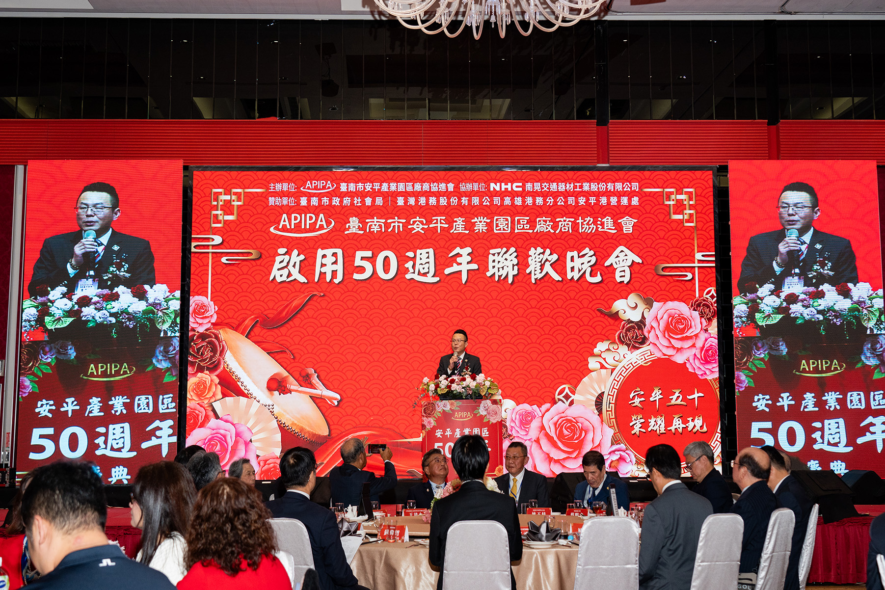 安平產業園區啟用50週年慶典席開150桌,產官學界及園區企業齊聚一堂,場面盛大熱烈,展現安平產業半世紀深耕成果與強大產業凝聚力 。圖/彪網媒 翻攝