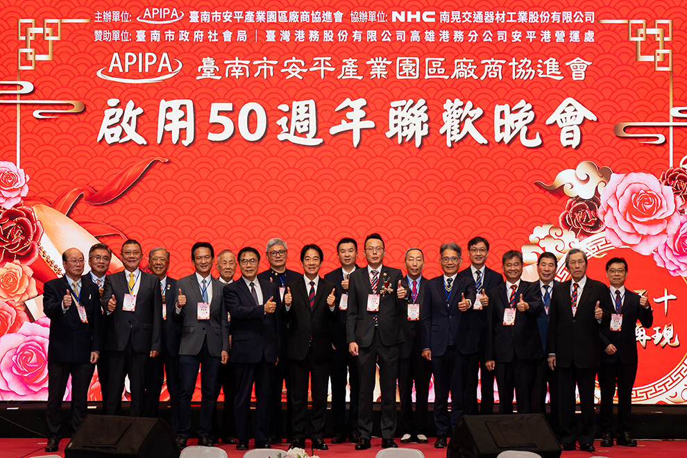 臺南市安平產業園區於 12 月 9 日隆重舉行啟用 50 週年慶典晚會,典禮由安平產業園區廠商協進會主辦,理事長鄭丞焜偕同理監事團隊迎接產官學界超過 600 企業、地方領袖及工商團體共同見證園區半世紀的重要里程碑。當晚陣容盛大,冠蓋雲集、星光熠熠,展現安平產業園區在國家產業版圖中的重要地位。