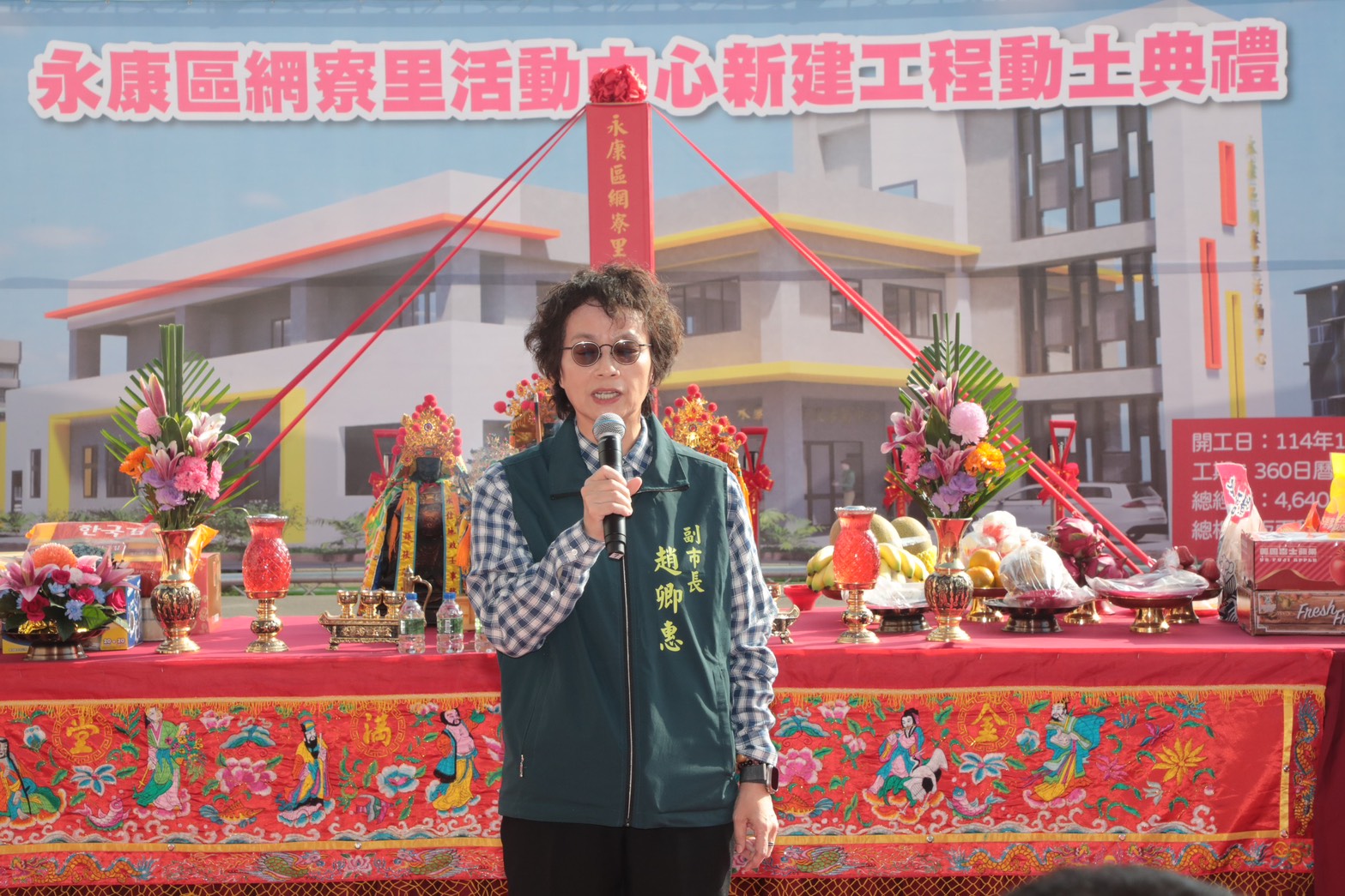 永康區網寮里活動中心新建工程今(13)日舉行動土典禮,副市長趙卿惠代表市長黃偉哲主持。