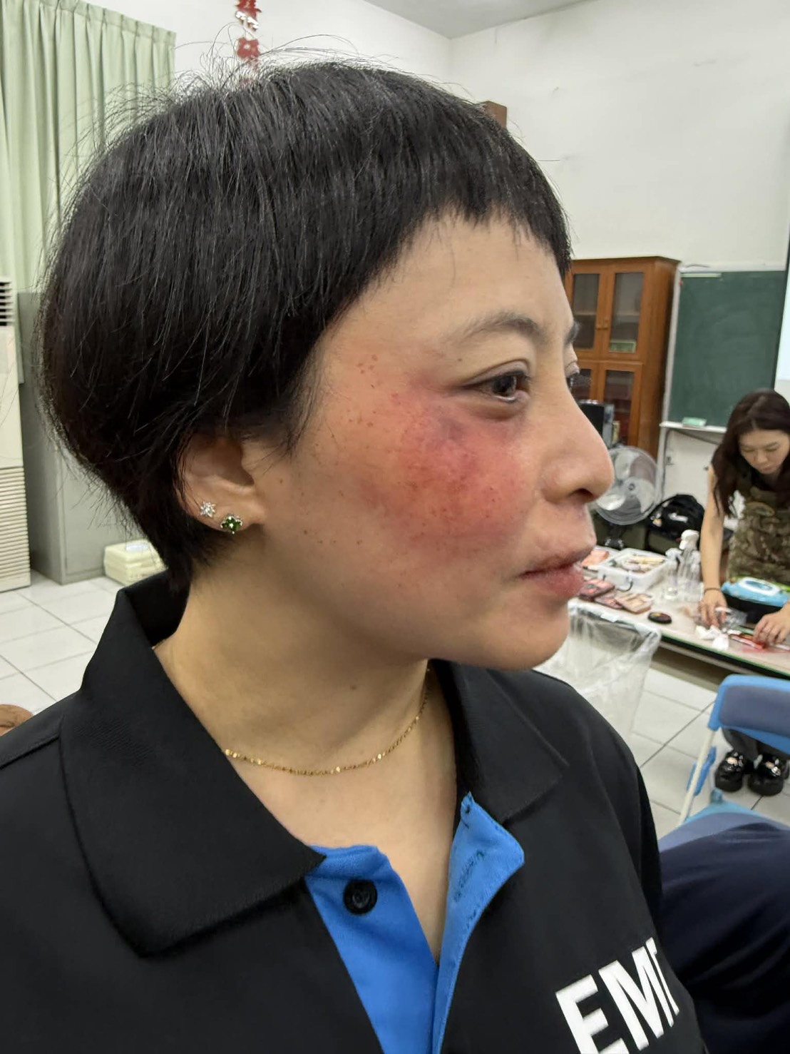 臺南市政府消防局於今(20)日舉辦「救護義消傷妝訓練」課程,特別邀請北區緊急醫療作業中心(EMOC)資深講師黃淑妏教官授課,透過專業講解與實作示範,帶領學員深入了解各類創傷型態與傷口結構,並進一步學習如何以傷妝技術真實呈現意外情境。