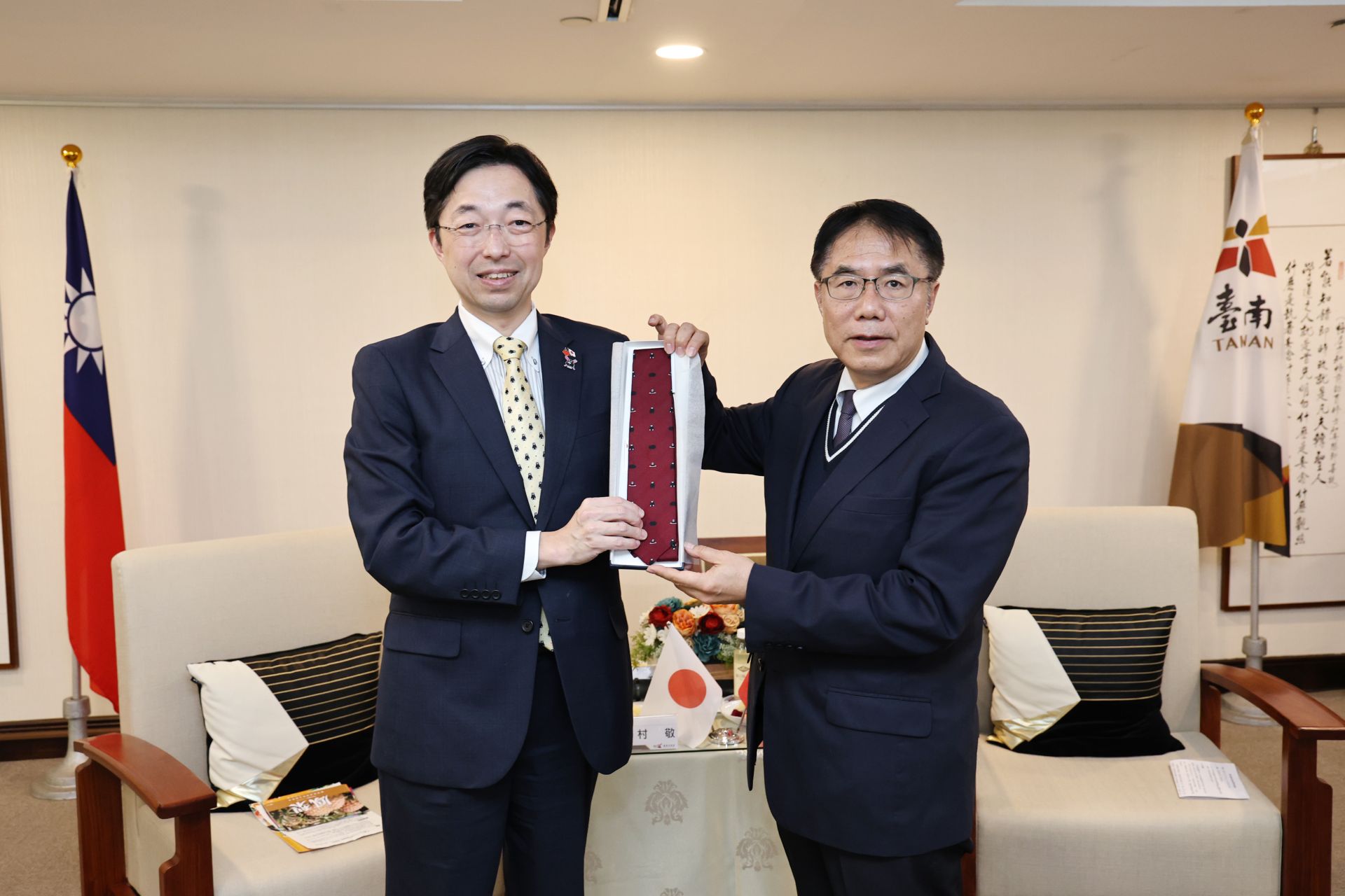 木村敬知事致贈熊本熊領帶給黃偉哲市長