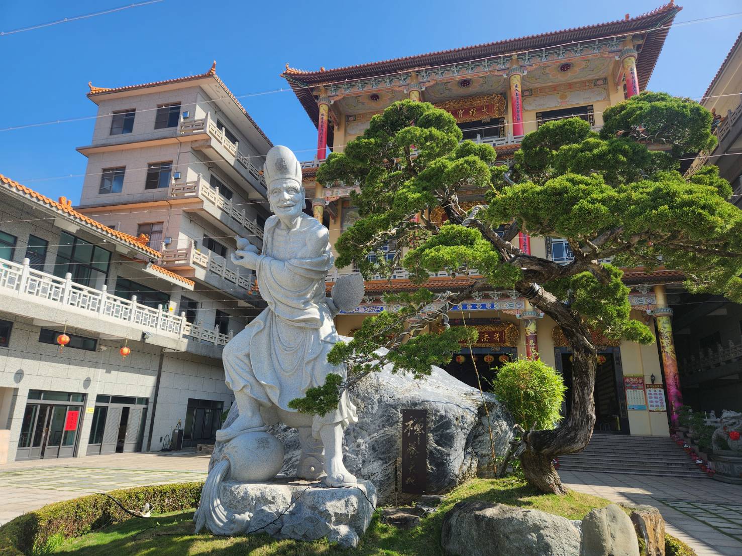 台南市普法道濟寺前廣場豎立濟公活佛石雕,栩栩如生。記者黃宣翰/攝影
