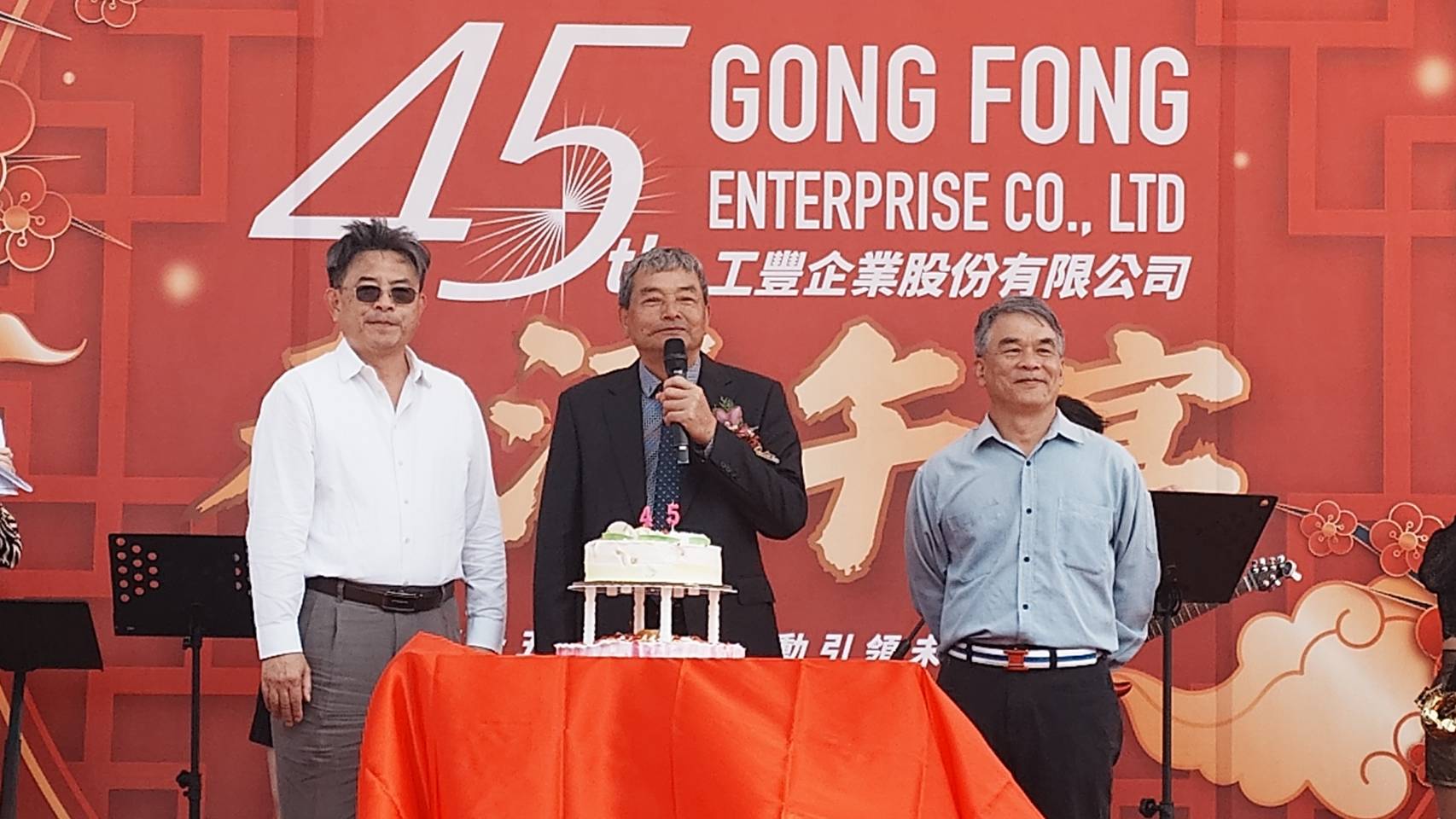 工豐企業45週年慶祝業績長紅,胡正德 董事長(中)胡正參 董事(左)林永壽 執行長(右)