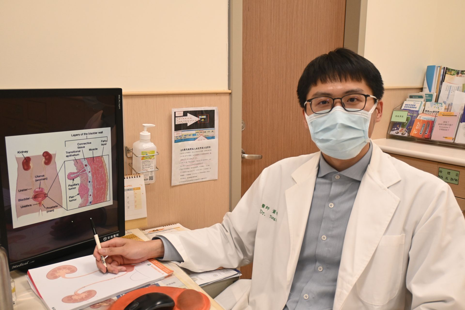 安南醫院泌尿科醫師董修廷指出,人體泌尿道從腎盂、輸尿管到膀胱皆覆蓋著上皮細胞,由於台灣上泌尿道癌發生率高,提醒民眾若出現「無痛性血尿」務必提高警覺,及早尋求專業評估(圖-安南醫院提供)