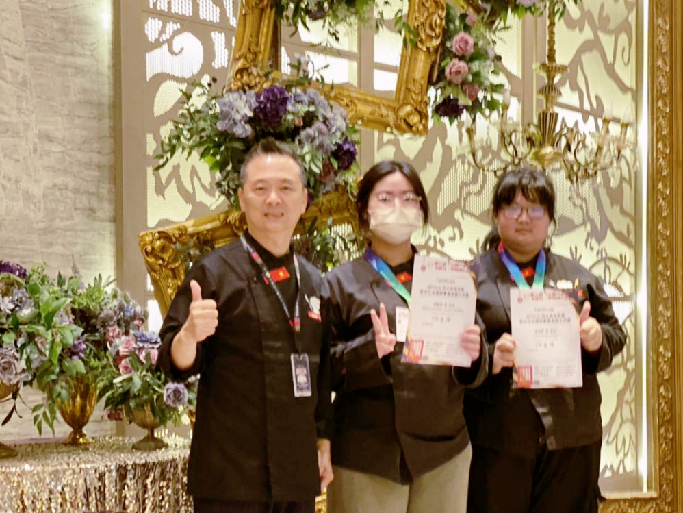 敏實科技大學餐飲管理系餐二A學生曾毓嵂參加無國界料理廚藝展示—前菜展示組,以獨到的創意與細膩的烹飪技巧榮獲金牌;敏實科技大學餐飲管理系餐三A學生徐翊恩則在兒童創意套餐組中,以充滿童趣又兼具美味的套餐設計,摘下金牌,展現出色的創意與實力。